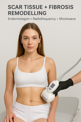 This layered approach delivers mechanical disruption + thermal remodelling + biological regeneration for superior scar-softening results.